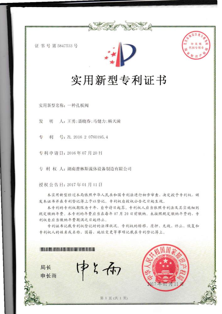 實(shí)用新型專利證書